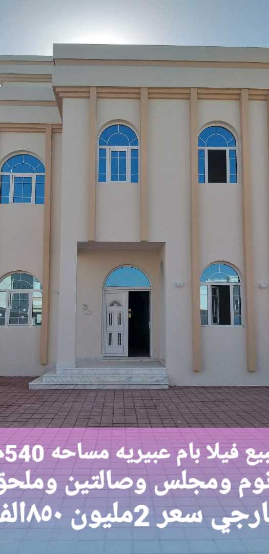 للبيع فلل بام تعبيريه مساحه ٥٤٠م جديده تتكون ٧نوم وغرفه طعام ومجلس وصالتين فوق وتحت ومحلق خارجي مكون من غرفه بحمام ومطبخ ومغسله ملابس سعر 2مليون 800الف