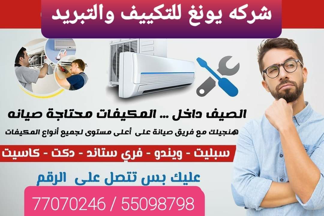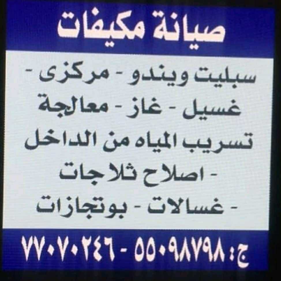 صيانه جميع المكيفات غسيل وغاز اسبيلت مركزي ويندو اصلاح ثلاجات بوتجازات وغسالات لسنا الوحدون ولكننا الافضل خبره عشرون عام للاتصال علي هاتف 77070246 / 55098798