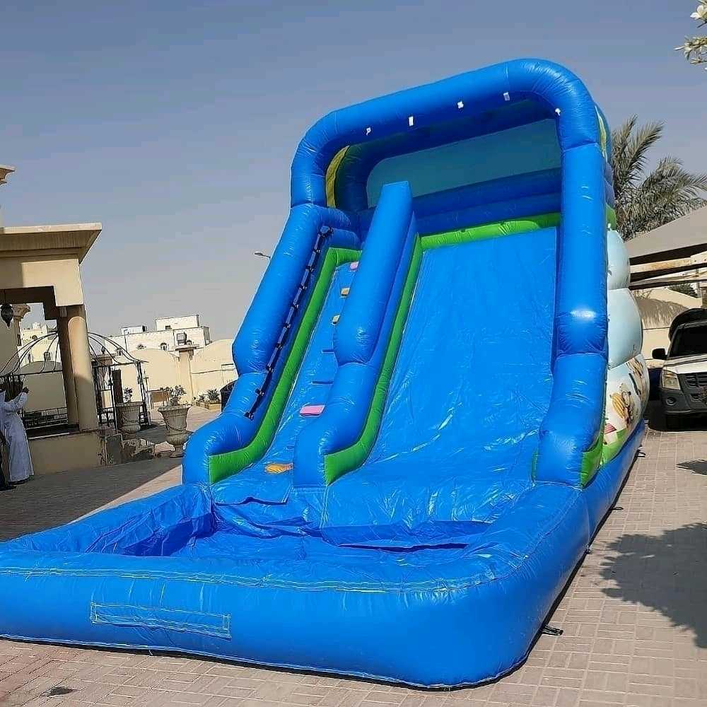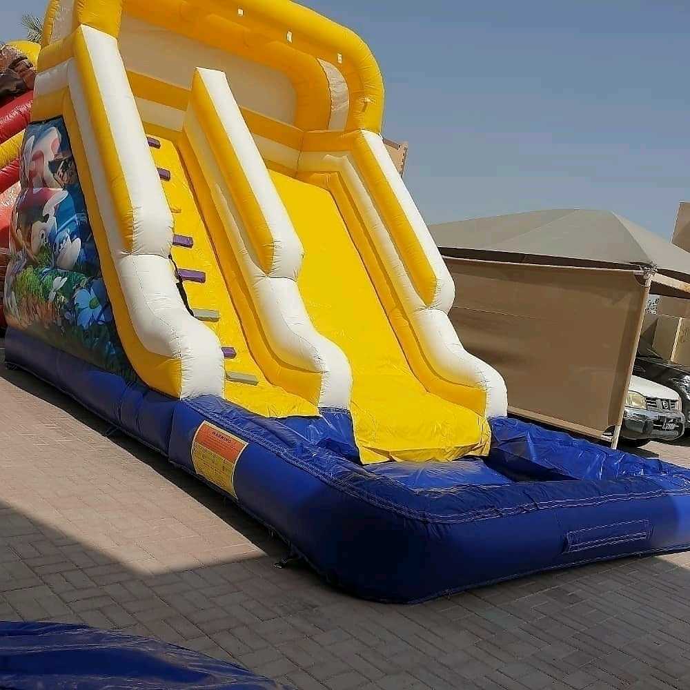 نطاطيات وزحلاقيات وملاعب صابونيةوبرك سباحة للايجار